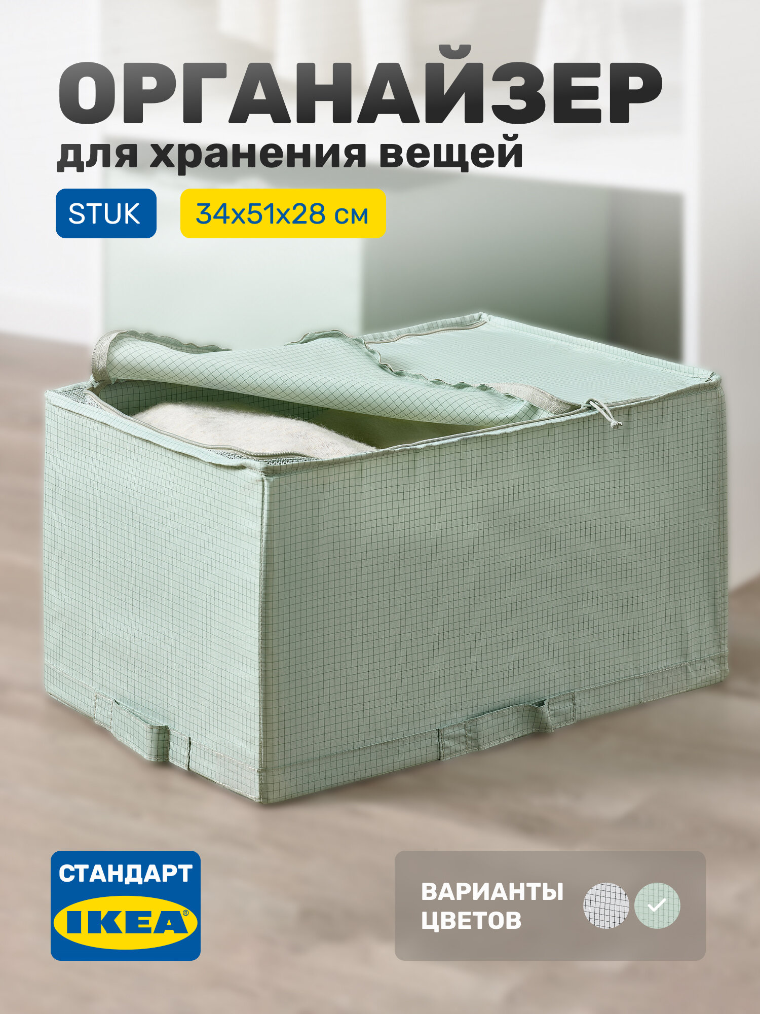 Изготовленный из 100% полиэстера с вставкой из полипропилена, наш органайзер для хранения вещей отличается высокой прочностью и долговечностью. Его размеры — Размеры органайзера составляют 34х51х28 см — идеально подходят для размещения в ящике под диваном, гардеробной или в шкафу. Удобная конструкция с крышкой на молнии защищает ваши вещи от пыли и загрязнений, а боковые ручки делают его транспортировку простой и комфортной.