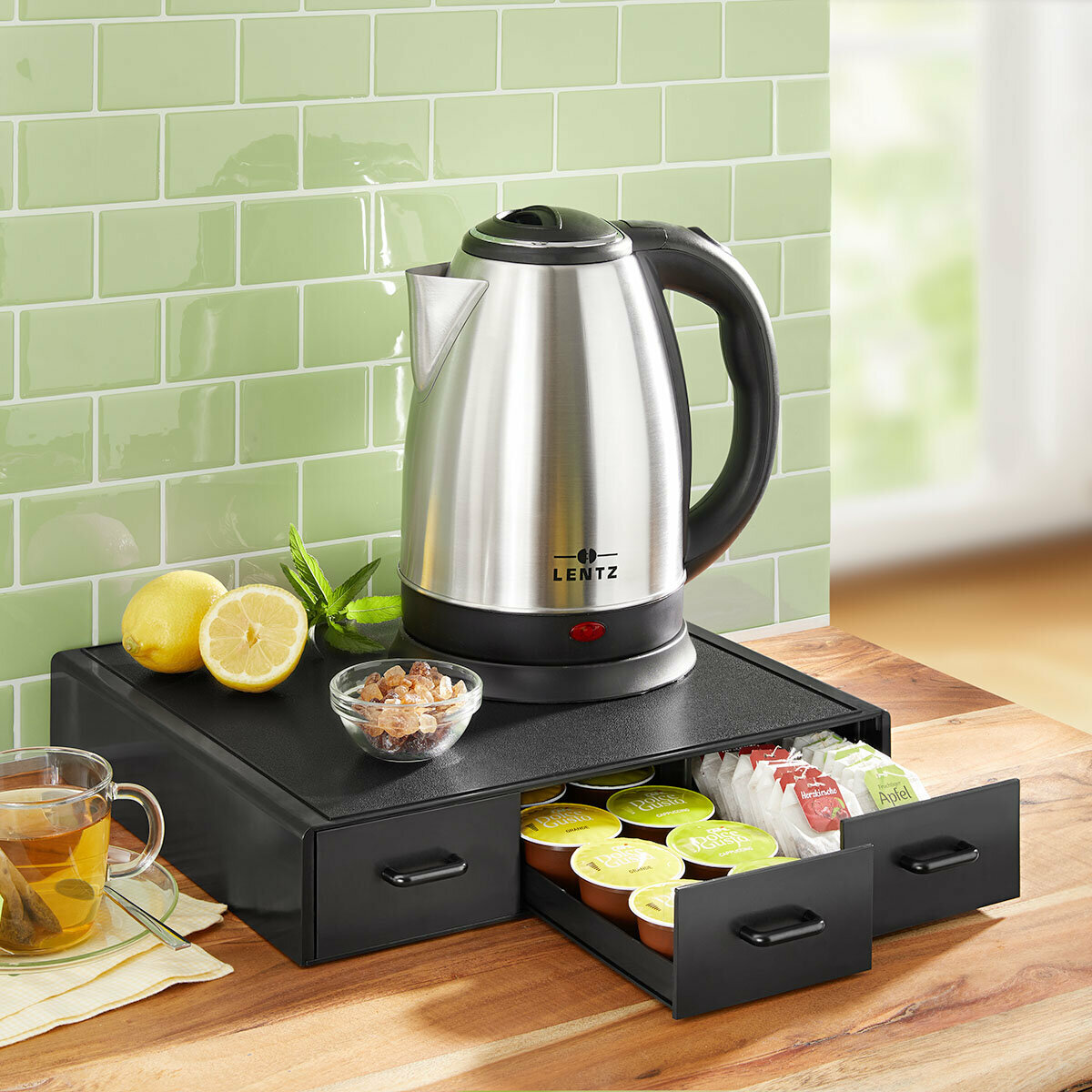 Органайзер для чая и кофе «Genialo» – это идеальное решение для организации хранения ваших любимых напитков. Благодаря трем удобным выдвижным ящикам с шестью отделениями, ваши запасы чая и кофе будут всегда на виду, а также вы сможете использовать органайзер как подставку для чайника или кофеварки. Выполненный в стильном черном цвете, этот органайзер из полимерного материала прекрасно дополнит любой интерьер. Размеры органайзера составляют: высота – 6,3 см, длина – 34 см и ширина – 32,5 см, что делает его компактным и удобным для использования как дома, так и в офисе. Отличный выбор для тех, кто ценит порядок и функциональность!