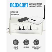 В коробе предусмотрены отверстия для вывода шнура, которые не будут передавливать и портить кабель. Футляр для проводов предотвратит зажевывание проводов при уборке комнаты роботом-пылесосом, а также разбросанные шнуры, кабеля, зарядки, переходники, удлинители и тройники не будут портить вид интерьера в помещении.