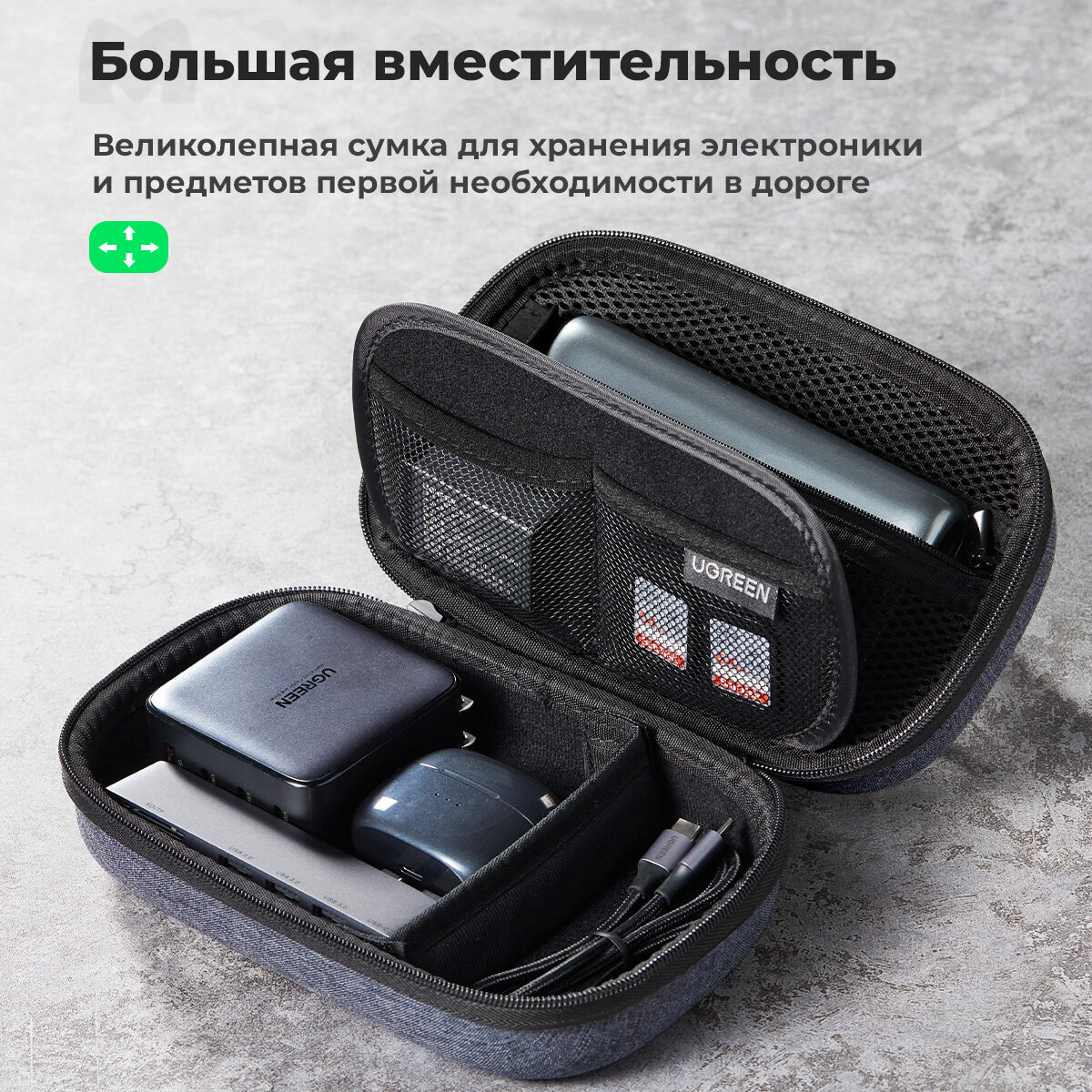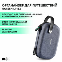 Органайзер для путешествий UGREEN LP152 предназначен для хранения смартфона, флэшки, карты памяти, наушников, часов. Продуманный дизайн идеально подходит для путешествий, поскольку в нем все кабели, электронные устройства и косметика хранятся в одном месте, что облегчает их поиск. Размер небольшого дорожного чехла для переноски составляет 203х129х72мм.