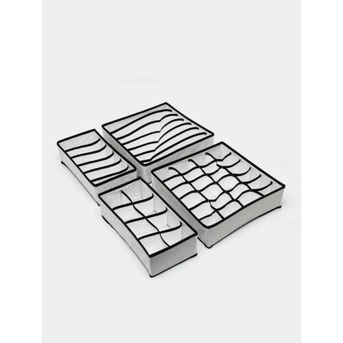 Органайзеры для хранения нижнего белья и вещей это идеальное решение для наведения порядка в шкафу, комоде, гардеробе и тумбочках! Складные кофры на молнии отлично подойдут для хранения белья, носков, трусов, чулок, колготок, лифчиков, бюстгальтеров, маек, трусиков, полотенец и прочих мелочей , так же для хранения канцелярии, бумаг, документов, визиток, инструмента, детских игрушек, аксессуаров и бижутерии. Органайзер для хранения сделан из специального материала, который не впитывает запахи и влагу. Органайзеры в случае необходимости можно протирать влажными салфетками. 45 отделений органайзера подойдут для хранения нижнего белья, бюстгальтеров, колготок, носочков, футболок. Размеры органайзеров подобраны таким образом чтобы поместиться в любом ящике или шкафу. Бежевый цвет подойдет под любой интерьер, и не даст вам не заметить нужную вещь при тусклом освещении. 4 органайзера: 24 ячейки (33х30х9 см), 7 секций (33х30х9 см), 6 секций (33х16х9 см), 8 ячеек (28х14,5х 9 см).