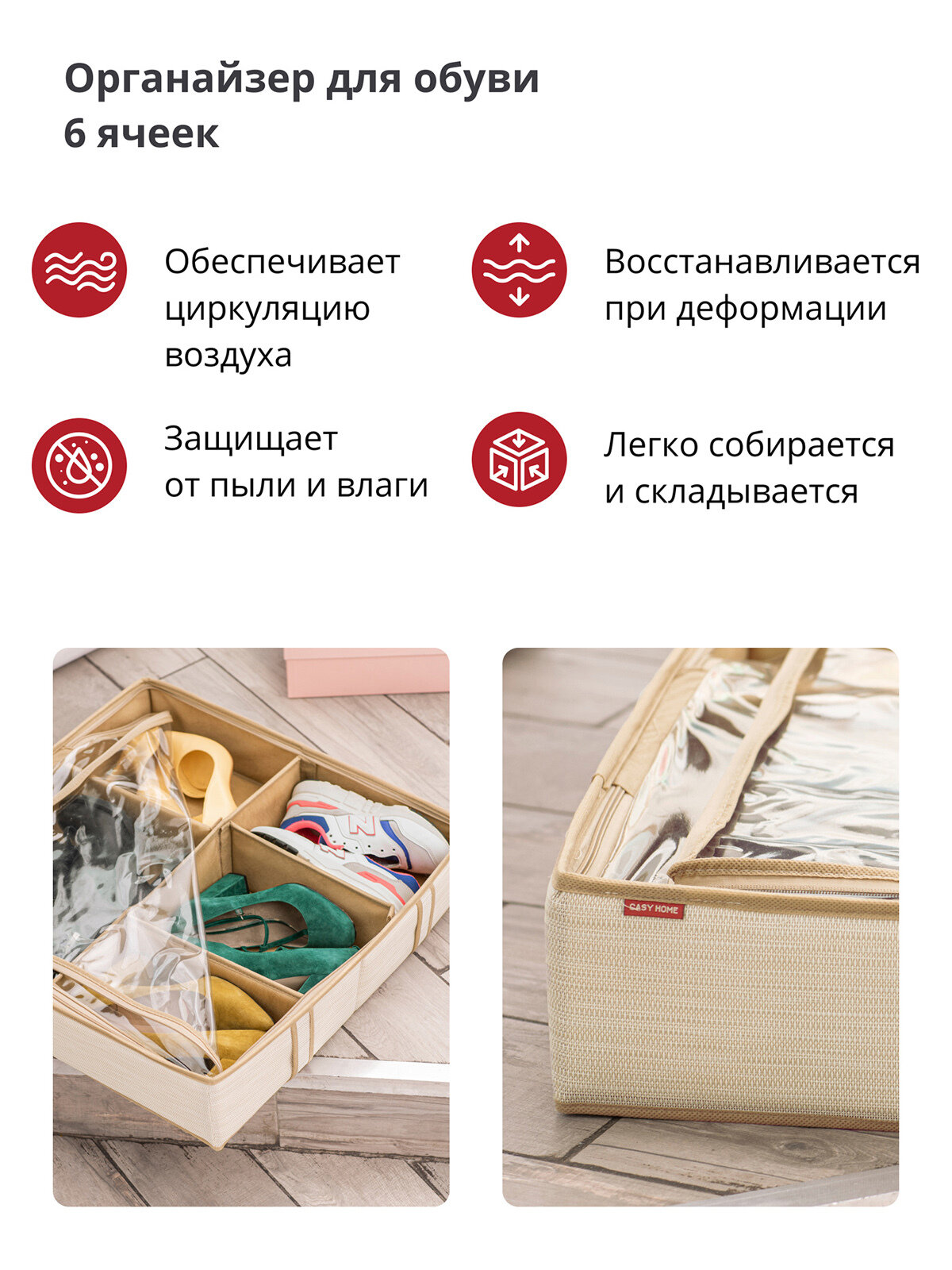 Органайзер CASY HOME, для обуви и сумок, 6 секций, прозрачный, 56 x 56 х 12см: сравнение цен, характеристики, фото, актуальное наличие и цены.