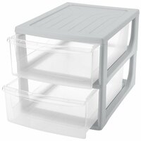 Органайзер настольный с двумя ящиками подойдет для организации пространства на рабочем столе (в том числе для хранения документов формата А4), в детской, ванной, кладовке, гараже, кухне и различных других местах. Несколько органайзеров можно объединить в систему хранения - они надежно ставятся один на другой благодаря совпадающей форме дна и углубления на крышке. Ящики органайзера оснащены стопорами, предотвращающими их выпадение. Прозрачные стенки позволяют без открывания увидеть, что хранится внутри каждого из них. Фактический объем: 25.3 л. Номинальный объем: 25 л.