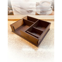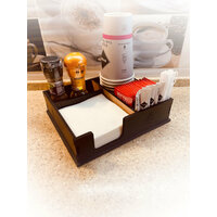 В комплекте с органайзером идет стильная коробка для кофе паузы, которая может использоваться не только для аксессуаров для кофе машин, но и для бумажных салфеток, одноразовых стаканчиков с крышками, ложечек и палочек для размешивания, а также коктейльных трубочек.