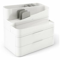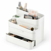 Органайзер-косметичка Glam поможет быстро навести порядок на вашем туалетном столике. Конструкция с тремя ящиками и отделениями для открытого хранения является очень вместительной и удобной в использовании. Съемные разделители позволяют создавать идеальные условия для хранения таких предметов, как кисти для макияжа, палетки теней и многое другое. Благодаря резиновым ножкам органайзер надежно фиксируется на столешнице, не повреждая ее поверхность.