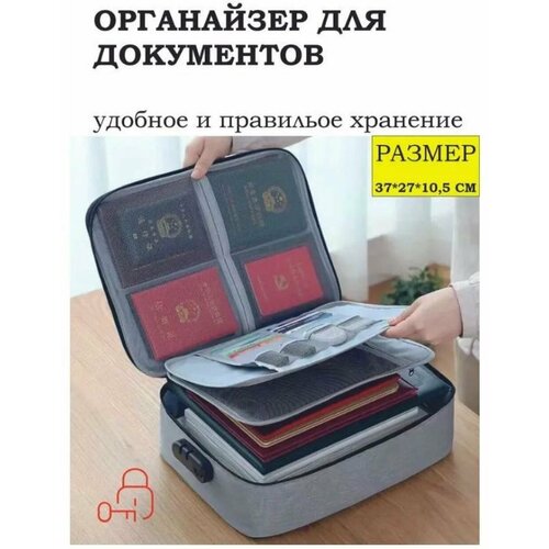 Органайзер для хранения документов - отличный способ держать документы в порядке, в одном месте и нужная вещь в путешествиях, используя его, вы легко создадите полноценную систему хранения вещей и документов. Преимущества органайзера для документов и вещей: сумку для документов удобно брать с собой в командировки и путешествия, защита личных вещей блокировкой паролем (заводской пароль - 3 ноля (000)), качественный износостойкий материал, второе отделение папки и бумаги формата А4, папка для хранения документов имеет специальный ремень для крепления на ручки чемодана. Теперь все документы в одном месте: паспорта, дипломы, налоговые, медицинские и другие документы будут удобно разложены в органайзере и вам не придется долго искать важную бумагу. Размеры кофра 37х28х10 см. Кейс удобно брать с собой в командировки. Имеется ручка для переноса папки и ремень для крепления на выдвижную ручку чемодана. Органайзер в автомобиль вмещает формат бумаги А4. Кейс для хранения вещей имеет одно основное отделение с застежкой, отдельную папку файл-вкладыш для документов с файлами. Также на крышке портфеля предусмотрено 4 отсека для паспортов и мелких аксессуаров. Материал органайзера для хранения канцелярии водостойкий. Поэтому можете не переживать, если попадете под дождь. Модель сумки подойдет не только для хранения документов, в нем удобно разместить и рукоделие, и детские принадлежности для творчества, и гаджеты, и аксессуары для автомобиля.