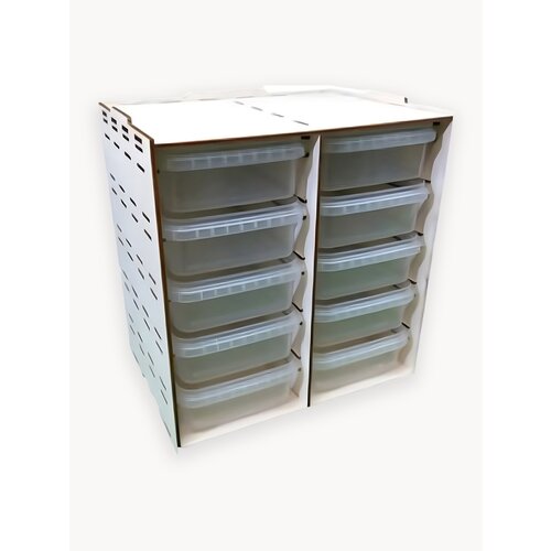 Небольшой органайзер с 10 выдвижными пластиковыми лотками.