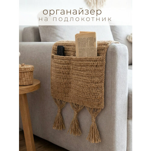 Удобный многофункциональный органайзер на подлокотник дивана или кресла для дома от бренда KLMK. Органайзер на диван имеет стильный дизайн и многофункциональное использование - в нем можно хранить: книги, газеты, зарядки, кроссворды, пульты и многое другое. Плетеный пенал на подлокотник сделан вручную, поэтому размер может немного отличаться +- 1 см. Подвесной органайзер не имеет креплений, при необходимости можно прихватить булавочками. Диванный органайзер будет гармонично смотреться в скандинавском или бохо стиле, а также прованс или деревенская классика. Органайзер слитный, его нельзя разъединить. Плетеный органайзер можно повесить в гостиной, каминной или спальне. Кармашки помогают не захламлять пространство, сохраняя место для света.