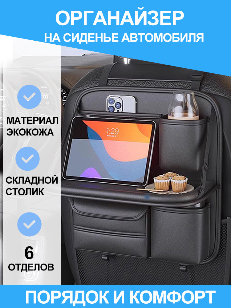 Органайзер на спинку автокресла черный — кожаный с откидным столиком (1 шт): сравнение цен, характеристики, фото, актуальное наличие и цены.