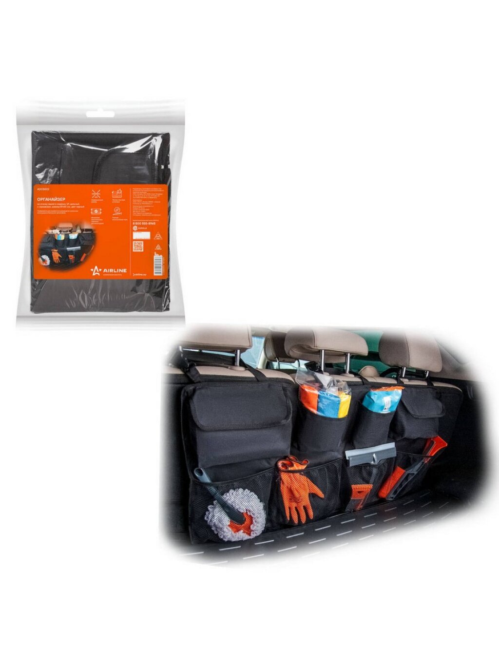Органайзер на спинку сиденья (3/3, раздельный на молнии, с карманами) «AIRLINE» черный: сравнение цен, характеристики, фото, актуальное наличие и цены.