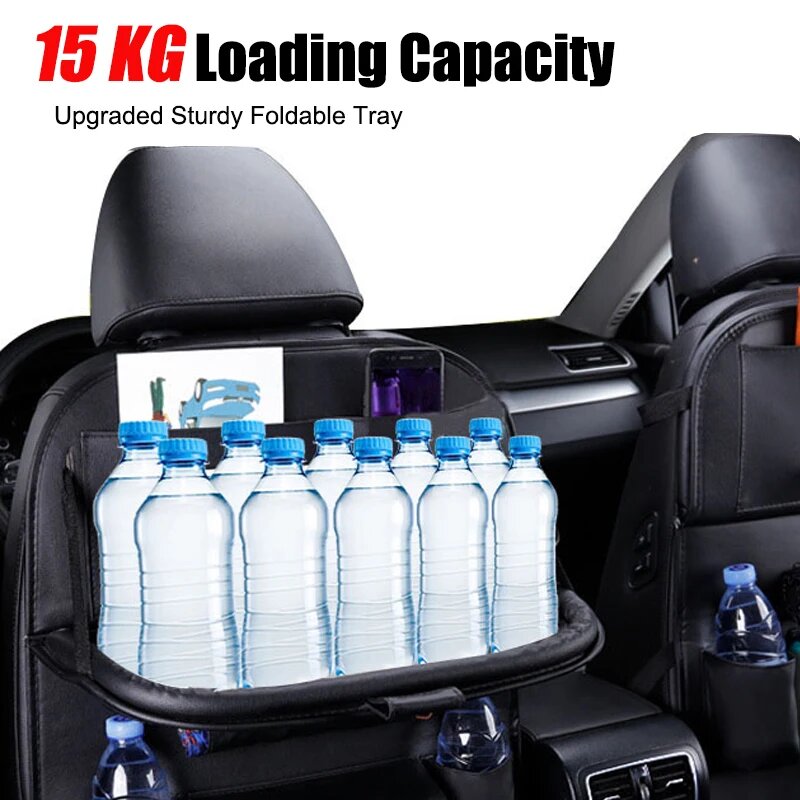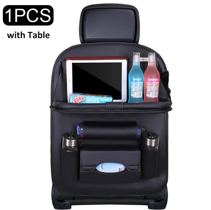Органайзер на спинку сиденья автомобиля, сумка из искусственной кожи для подушек, органайзер для хранения в автомобиле, складной столик, дорожная сумка для хранения, автомобильные аксессуары, black with tray