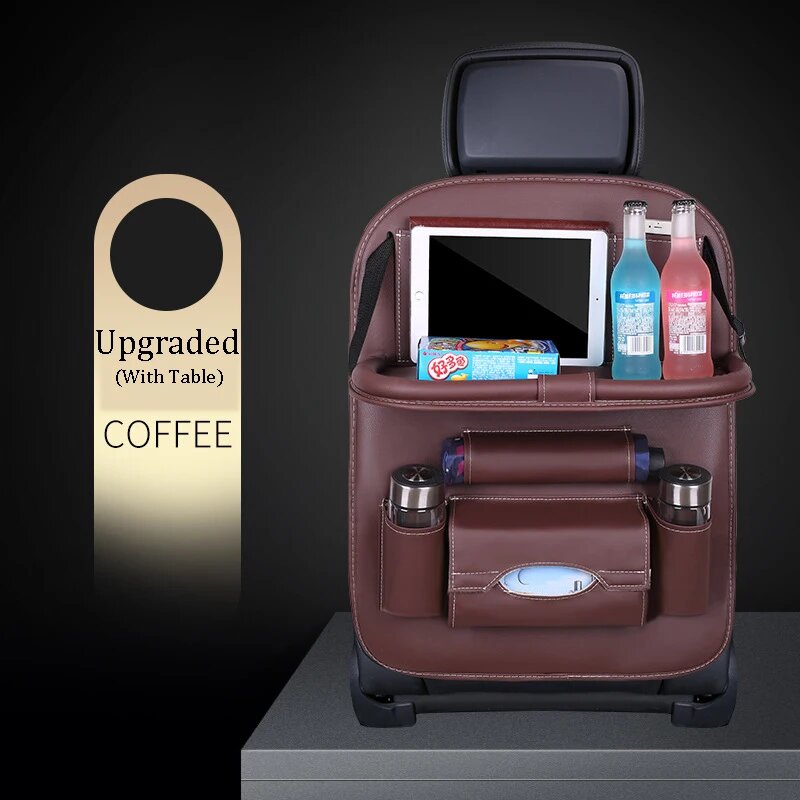 Органайзер на спинку сиденья автомобиля, сумка из искусственной кожи для подушек, органайзер для хранения в автомобиле, складной столик, дорожная сумка для хранения, автомобильные аксессуары, Coffee with table