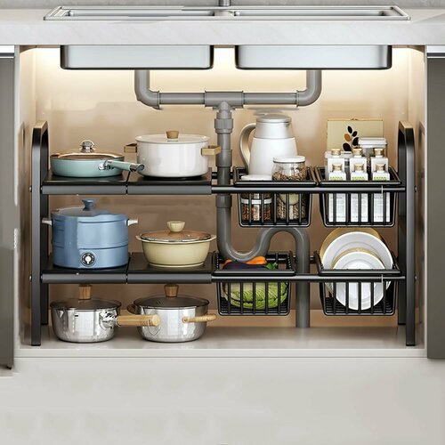 Органайзер под раковиной — выдвижная кухонная полка для хранения под раковиной двухъярусная 4 полки 4 корзины, черная: сравнение цен, характеристики, фото, актуальное наличие и цены.