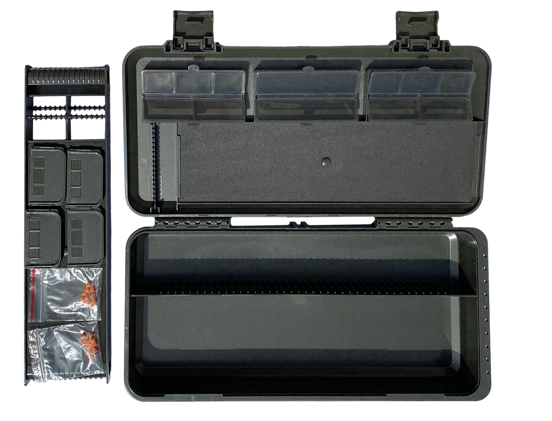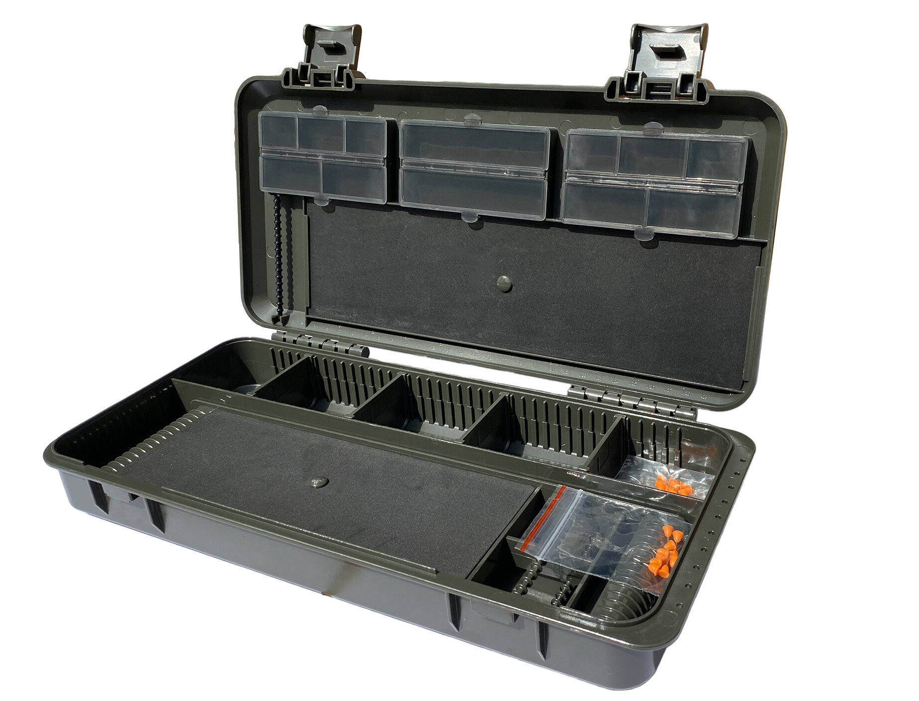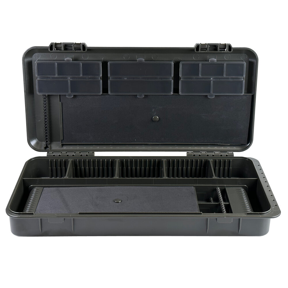 Каждый бокс в линейке разработан и продуман для максимального удобства использования. Все элементы креплений, крышек, и защелок многократно тестировались и проверялись. Размеры ячеек и отделений адаптированы под карповые материалы и оснастки.