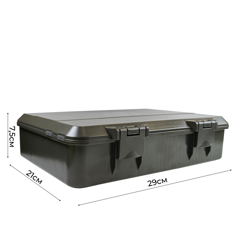Каждый бокс в линейке разработан и продуман для максимального удобства использования. Все элементы креплений, крышек, и защелок многократно тестировались и проверялись. Размеры ячеек и отделений адаптированы под карповые материалы и оснастки.