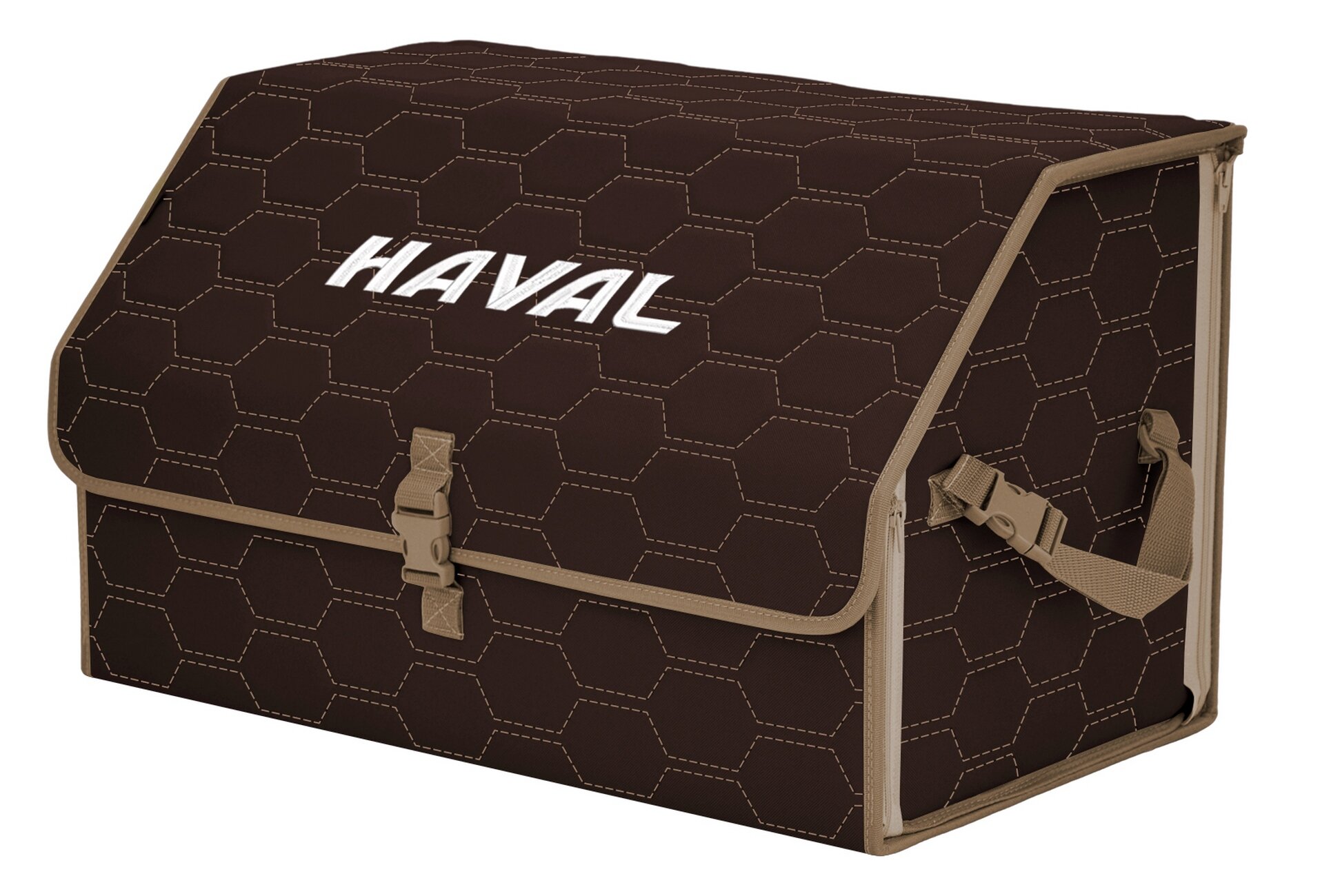 Купить Органайзер-саквояж «Союз» в багажник Haval (Хавейл), размер XL. Цвет: коричневый с бежевой прострочкой Соты. с доставкой по всей России.