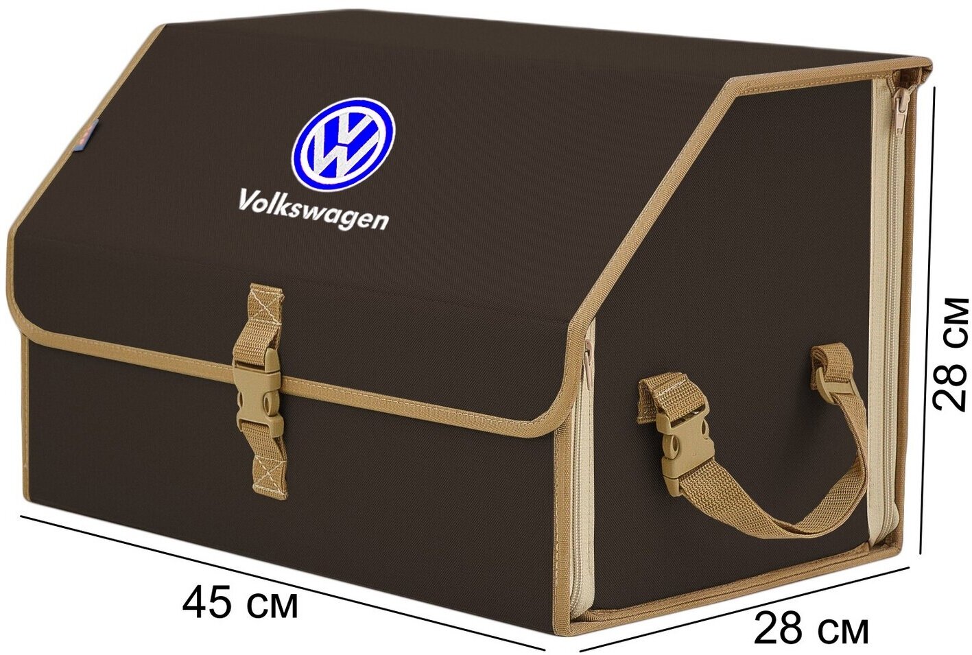 Органайзер-саквояж «Союз» в багажник Volkswagen (Фольксваген), размер L. Цвет: коричневый с бежевой окантовкой.