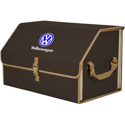 Органайзер-саквояж «Союз» в багажник Volkswagen (Фольксваген), размер XL. Цвет: коричневый с бежевой окантовкой.