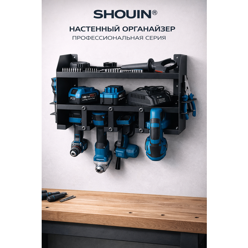 Прочная стальная конструкция обеспечивает надёжную фиксацию шуруповёртов и другого электроинструмента. Органайзер подходит для использования в гараже, мастерской, на даче или в профессиональной зоне ремонта.