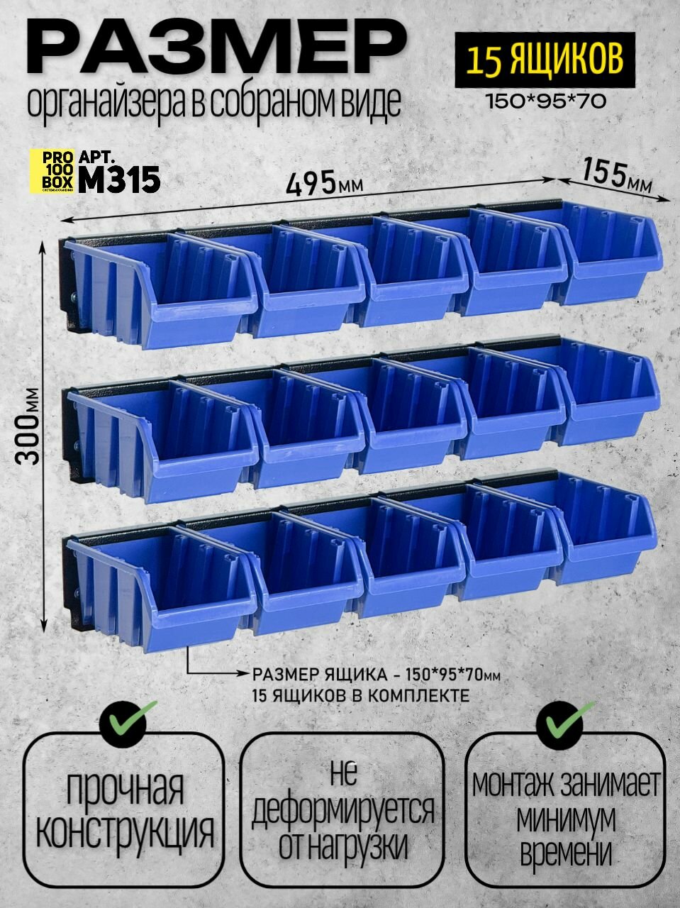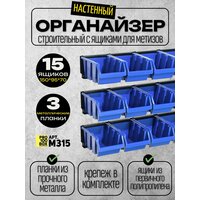 Органайзер строительный с ящиками для метизов, 15 ящиков №1(150*95*70), 3 металлические планки, синий: сравнение цен, характеристики, фото, актуальное наличие и цены.
