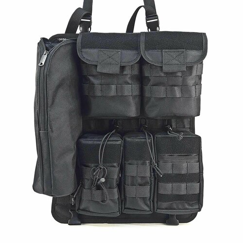 Органайзер на спинку сидения из 6 подсумков, одной панели MOLLE и 4 эластичных стяжек.