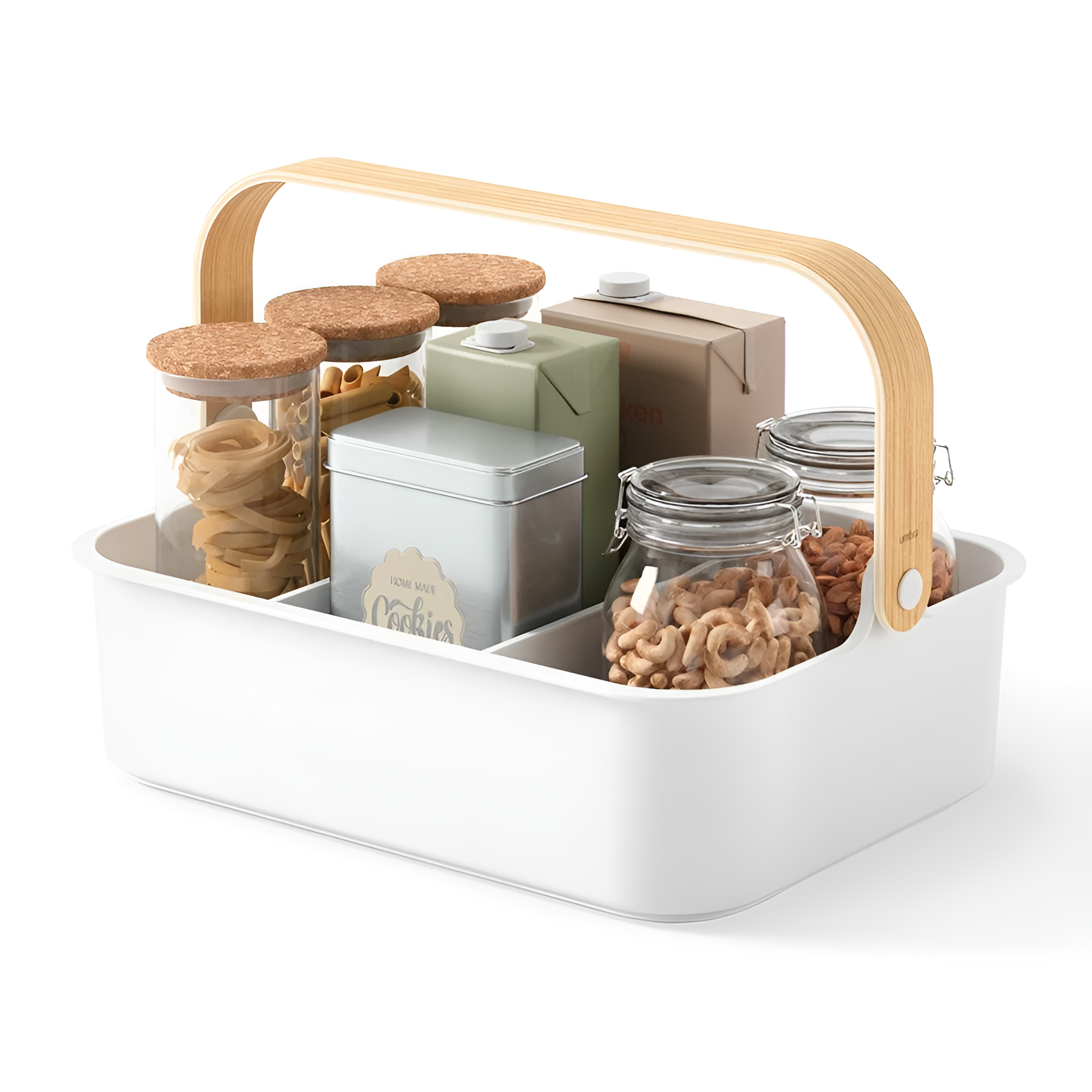 Органайзер Bellwood поможет организовать компактное хранение продуктов и вещей в любой из комнат. Специальные разделители позволяют удобно размещать и сортировать предметы. Органайзер на 80%, выполнен из переработанного АБС-пластика, известного своей прочностью, устойчивостью к износу и долговечностью. Он оснащен ручкой из древесины, которая обеспечивает простую переноску, а также делает дизайн привлекательным и интересным.