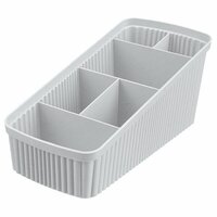 Этот универсальный органайзер VELVET размером 240х117х106 мм, выполненный в нежном светло-сером оттенке с текстурой флэк, – это идеальное решение для тех, кто ценит практичность и стиль в каждой детали. Его лаконичный дизайн и нейтральный цвет позволяют ему гармонично вписаться в любой интерьер, не перегружая пространство и не отвлекая на себя внимание. Он станет незаметным, но незаменимым помощником в организации хранения.