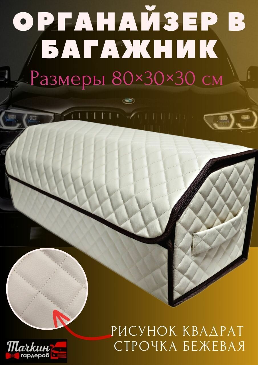 Купить Автомобильный органайзер в багажник, 80х30х30 см, рисунок квадрат бежевый/ строчка бежевая/ окантовка черная. с доставкой по всей России.