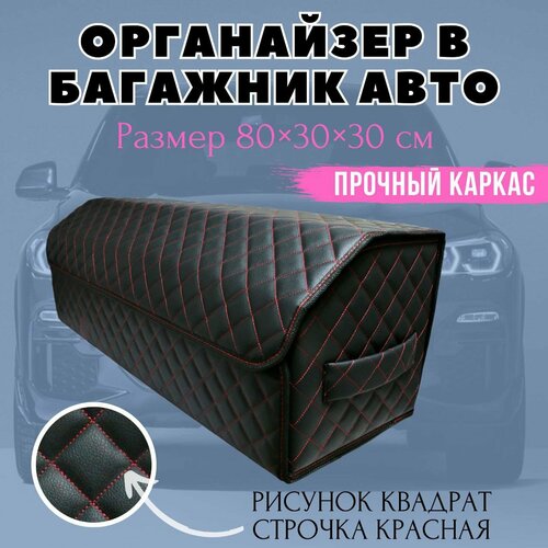 Органайзер автомобильный в багажник, 80*30*30 см, рисунок квадрат черный/ строчка красная/ окантовка черная.: сравнение цен, характеристики, фото, актуальное наличие и цены.