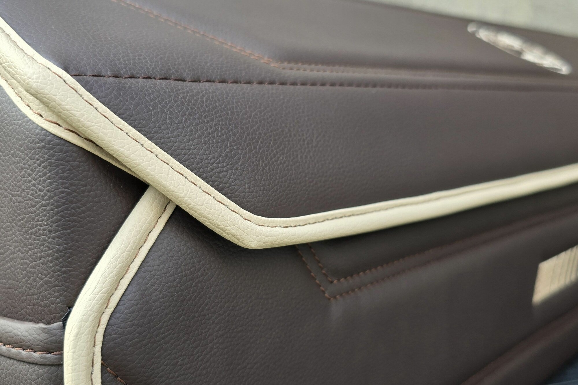 Наша сумка в багажник автомобиля выполнена из премиальной экокожи Dakota Dark Chocolate цвета, стилизована бежевым декором. Она идеально подходит для хранения инструментов. Прочный каркас из композитного кожкартона делает органайзер стойким к различным химическим веществам, таким как моторное масло, незамерзайка, что позволяет использовать его в любых условиях без опасений за его состояние. Он легко очищается, не впитывает влагу и обладает износостойким внутренним слоем из файбертекса, что гарантирует долговечность эксплуатации. Сборка органайзера автомобильного занимает всего несколько минут, а липучки на дне и задней стенке обеспечивают надежное крепление.