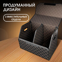 Органайзер в багажник автомобиля. Бокс для хранения в авто 50*35*30. Чёрный/бежевая строчка: сравнение цен, характеристики, фото, актуальное наличие и цены.