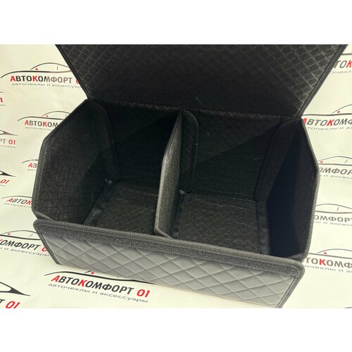 Органайзер имеет размеры 50 * 30 * 30 см и делится внутри на две части перегородкой на липучке, которую можно отстегнуть, что позволяет разместить в нем все необходимые вещи и аксессуары. С липучками на дне, органайзер легко крепится к полу багажника, обеспечивая надежную фиксацию и защиту содержимого от перемещения.