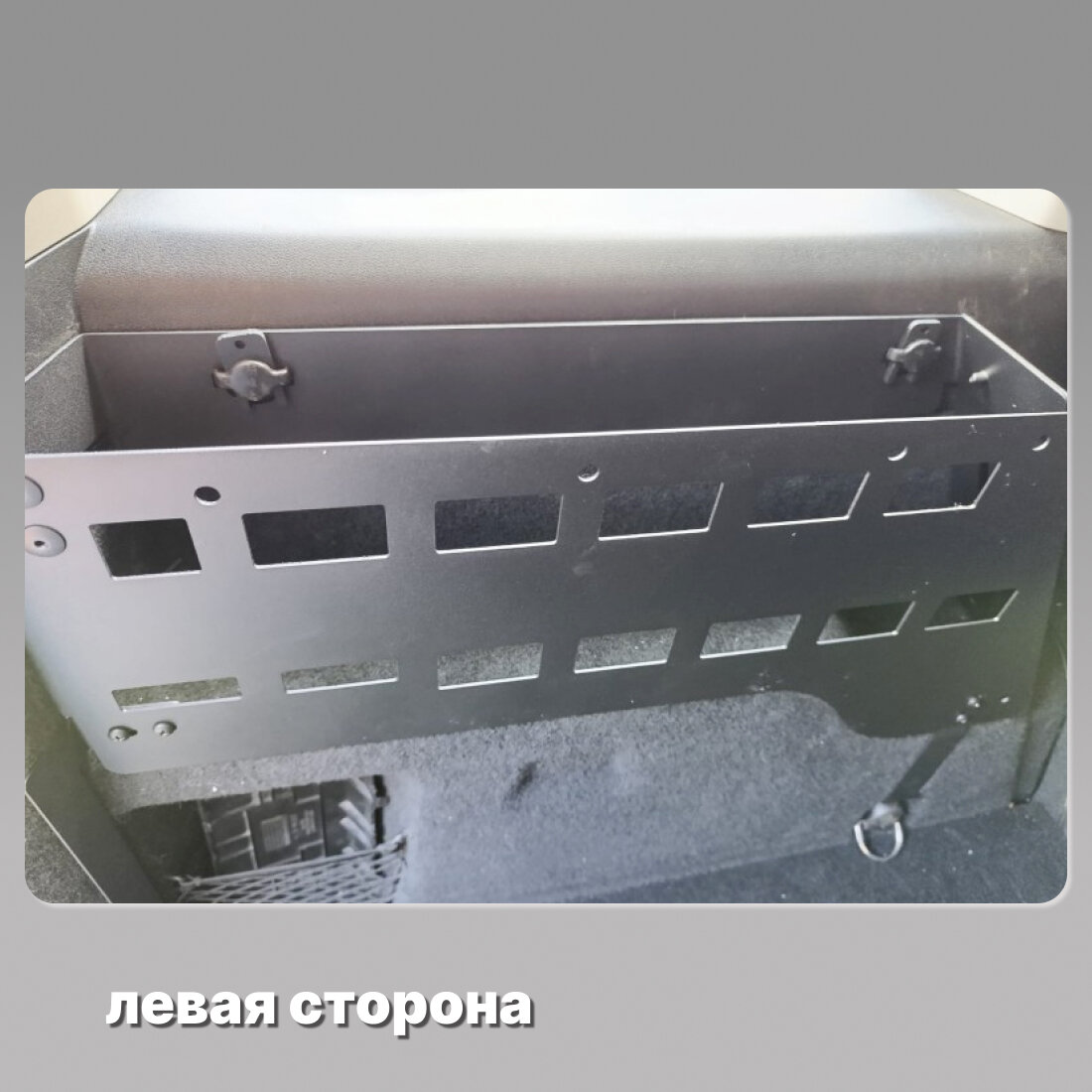 Два органайзера в проемы колесных арок (правый и левый) и горизонтальная полочка. Крепления с болтами и гайками
