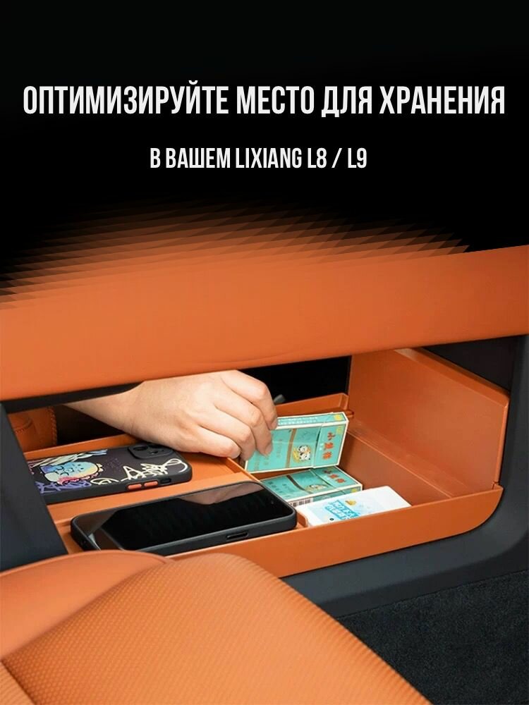 Органайзер в нижнюю консоль в цвет салона Lixiang L8 / L9 Orange: сравнение цен, характеристики, фото, актуальное наличие и цены.