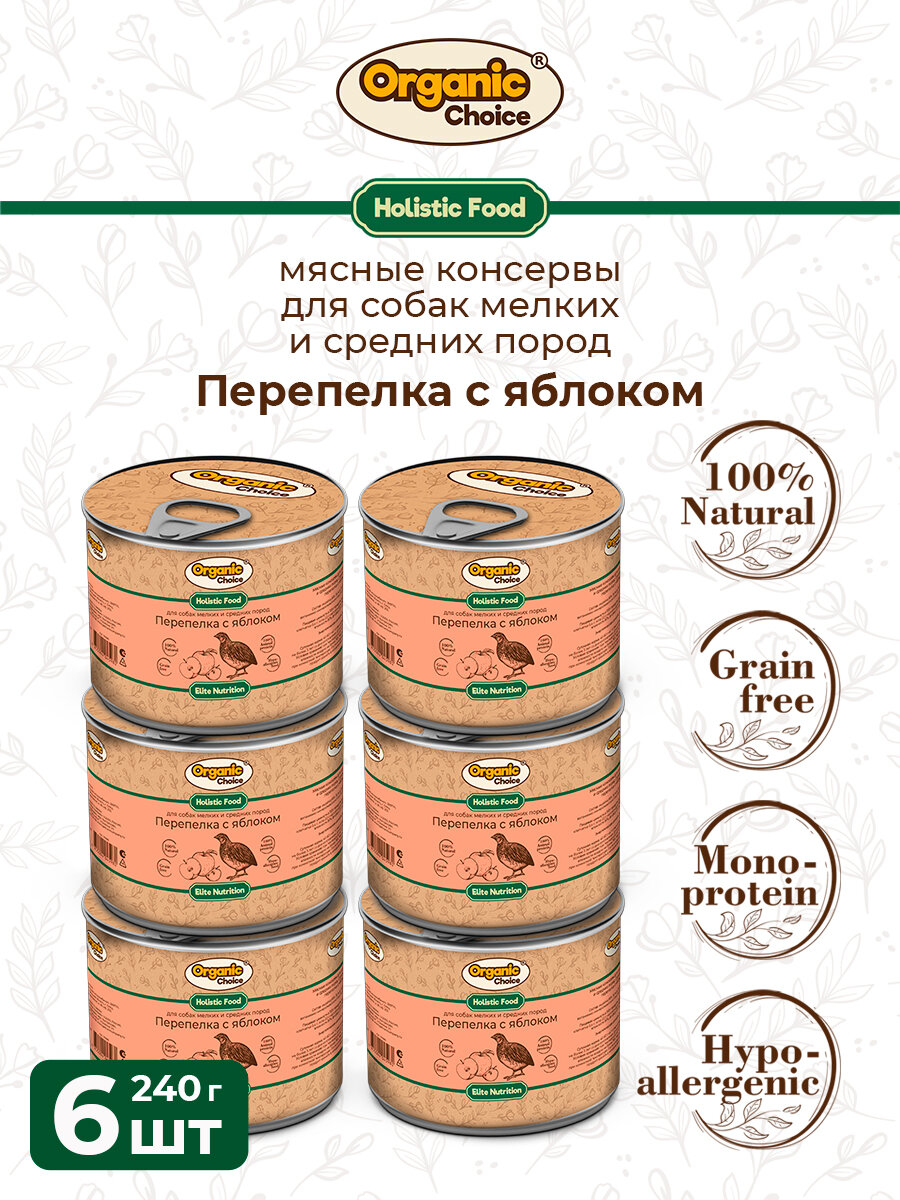 Купить Влажный корм Organic Choice консервы для собак мелких и средних пород перепелка с яблоком 240 г х 6 шт с доставкой по всей России. Влажный корм Organic Choice консервы для собак мелких и средних пород перепелка с яблоком 240 г х 6 шт: сравнение цен, характеристики, фото, актуальное наличие и цены.