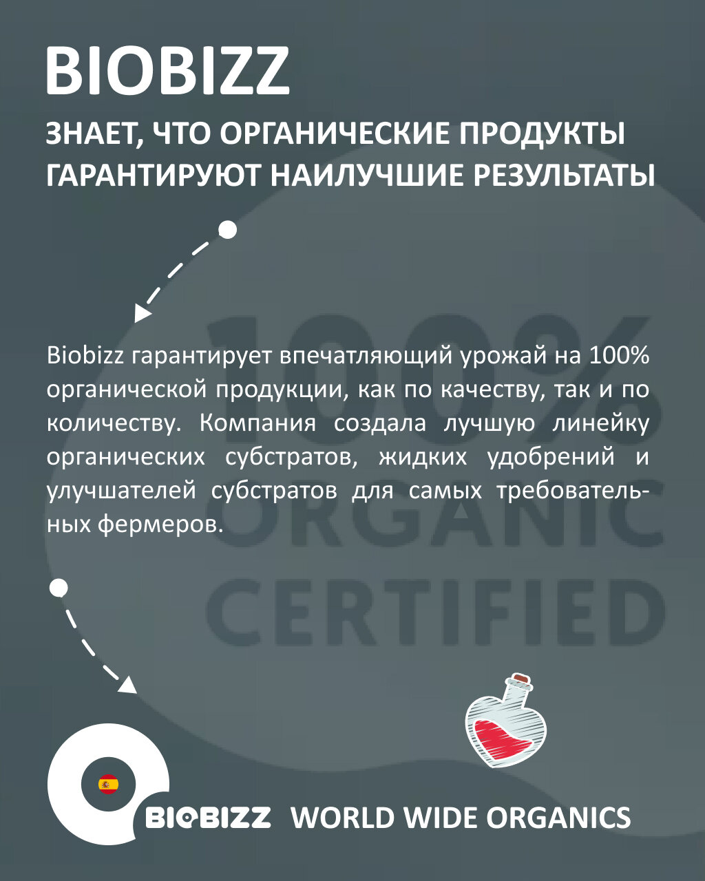 Органическое удобрение для стадии роста. Можно использовать с любым видом почвы или субстрата. Производится на основе 100% органического экстракта голландской сахарной свёклы, полученного путём естественной ферментации. При взаимодействии крахмала с ферментами вырабатывается глюкоза, которая вместе с прочими элементами является источником питания для почвенных микроорганизмов, повышая плодородность почвы. Bio-Grow содержит 70 микроэлементов и витамины В1, В2, С и Е. При появлении первой листвы начинайте использовать Bio-Grow, и продолжайте применение на протяжении всего периода цветения и до конца периода плодоношения. Состав: Азот — 8%, Аммиак — 4%, Нитрат — 4%, Фосфор — 2%, Калий — 6%.