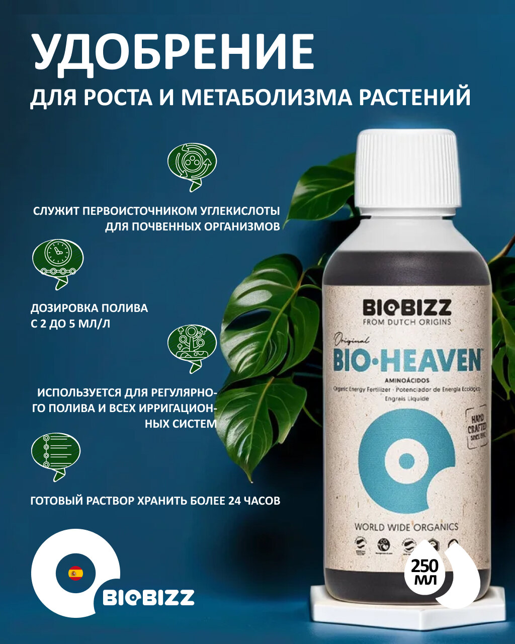 Bioheaven biobizz 250 мл – специально разработанный растительный стимулятор, содержащий тщательно отобранные биостимуляторы, такие, как аминокислоты. Аминокислоты являются основой протеинов и энзимов, которые необходимы растениям для их структуры и метаболизма.