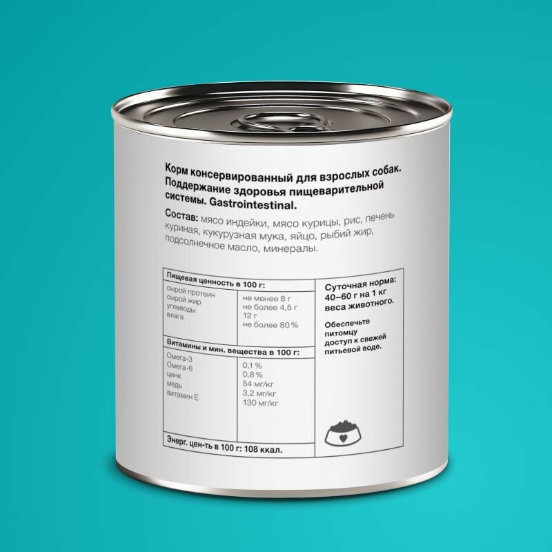 Консервы Organix Preventive Line Gastrointestinal для взрослых собак – полнорационный мясной корм, предназначенный для профилактического питания: