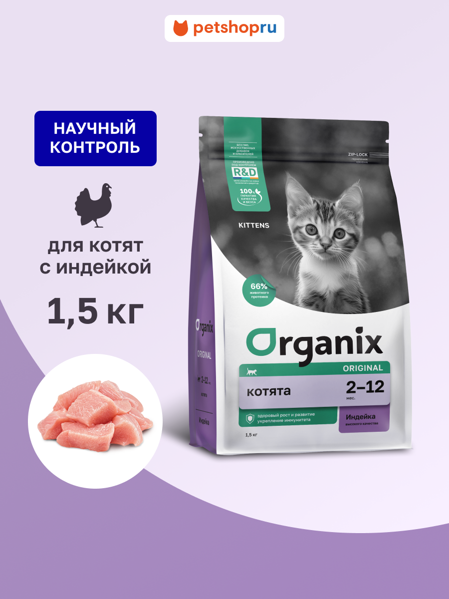 Organix Сухой корм для котят с индейкой, фруктами и овощами, Kitten Turkey, 1,5кг: сравнение цен, характеристики, фото, актуальное наличие и цены.
