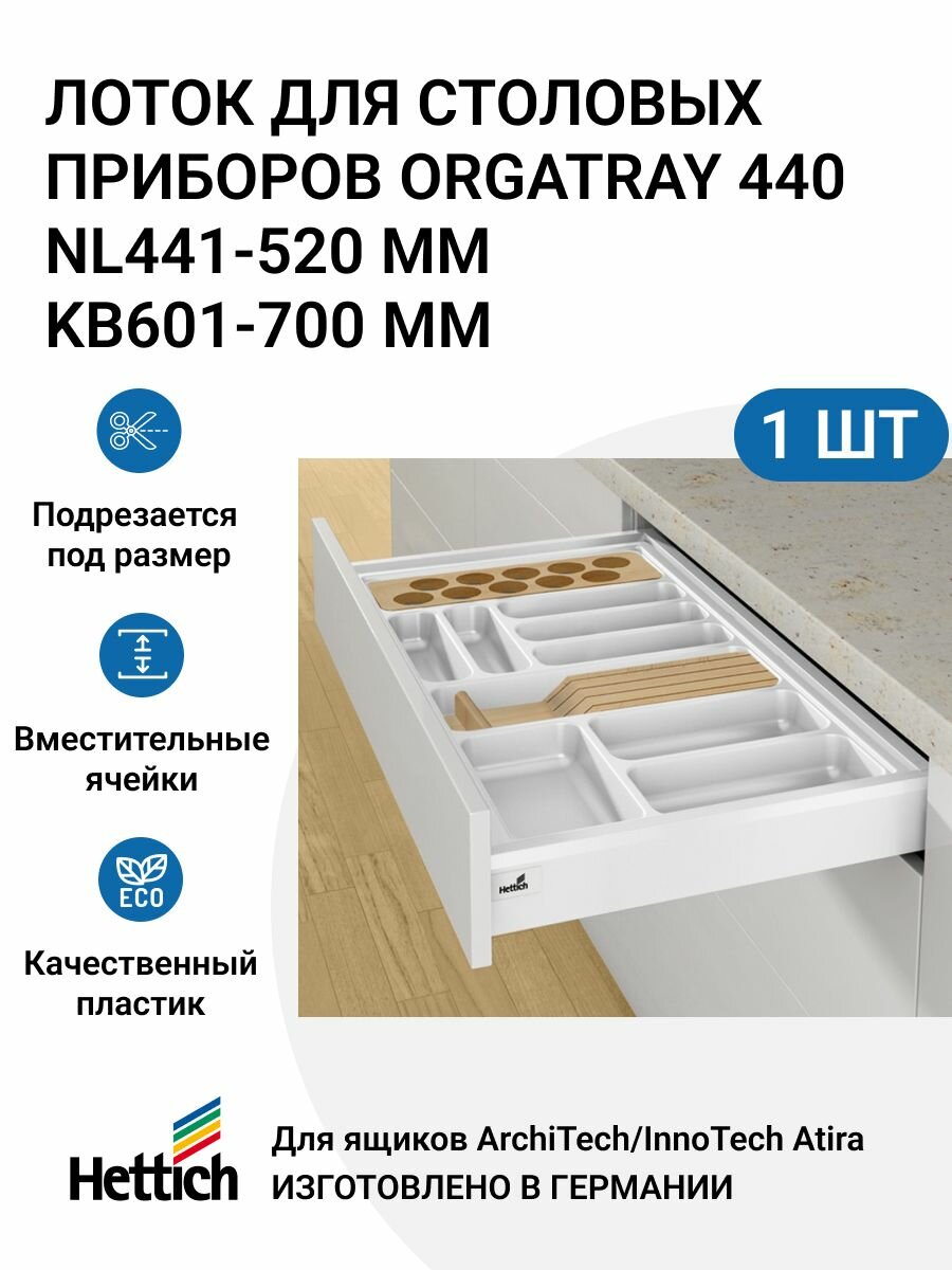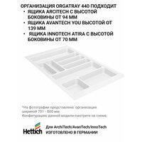 Лоток для столовых приборов HETTICH OrgaTray 440 для ящиков ArciTech/AvanTech/InnoTech Atira, T441-520 мм, B601 — 700 мм, цвет белый: сравнение цен, характеристики, фото, актуальное наличие и цены.