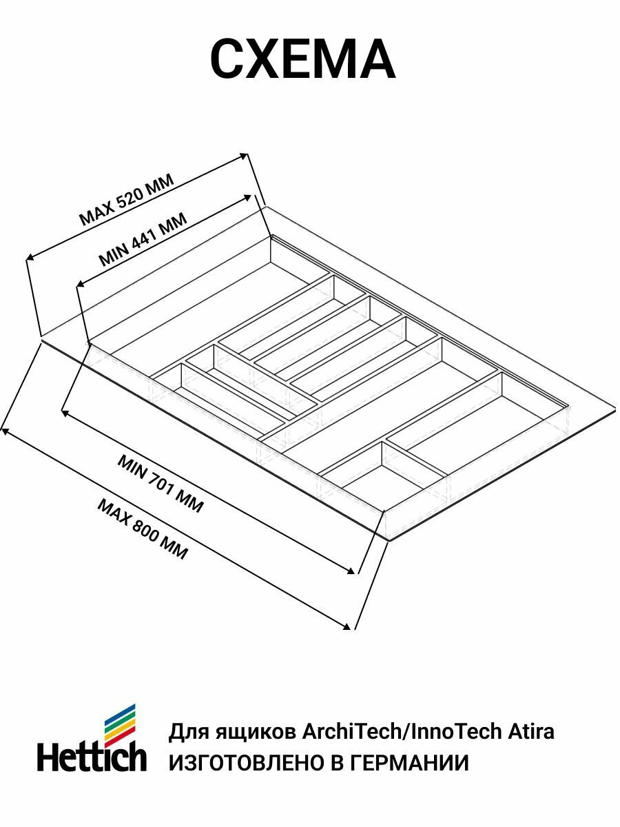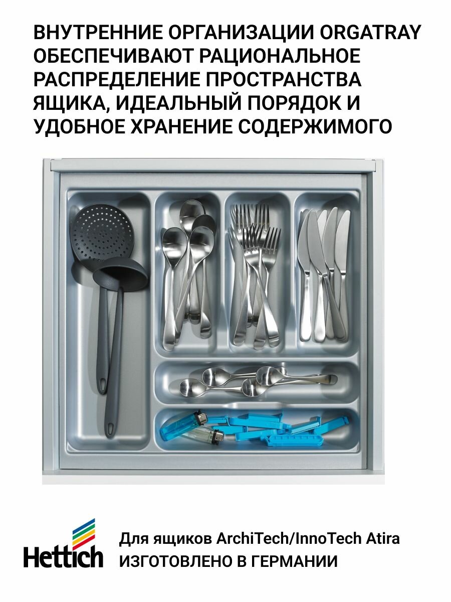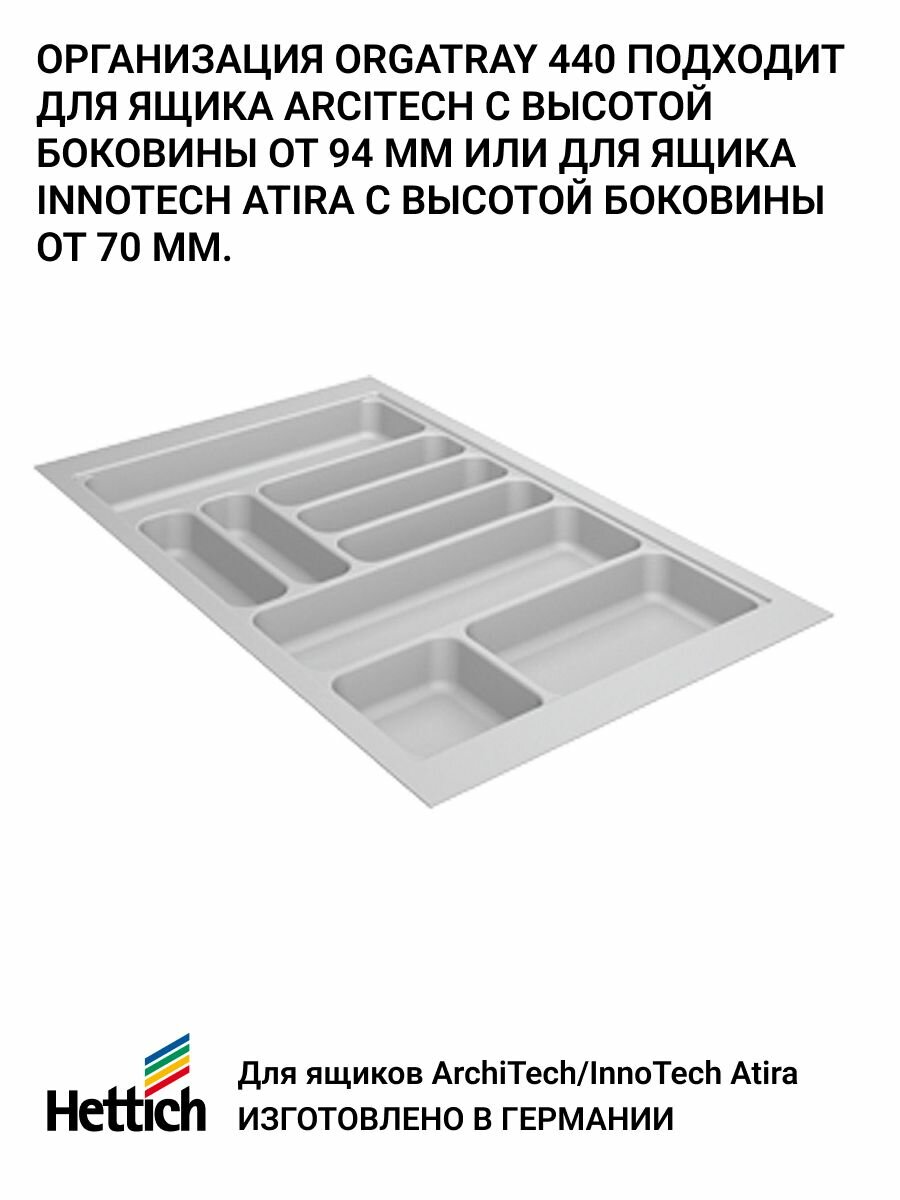 Лоток для столовых приборов HETTICH OrgaTray 440 для ящиков ArciTech/AvanTech/InnoTech Atira, T441-520 мм, B701 — 800 мм, цвет серебристый: сравнение цен, характеристики, фото, актуальное наличие и цены.