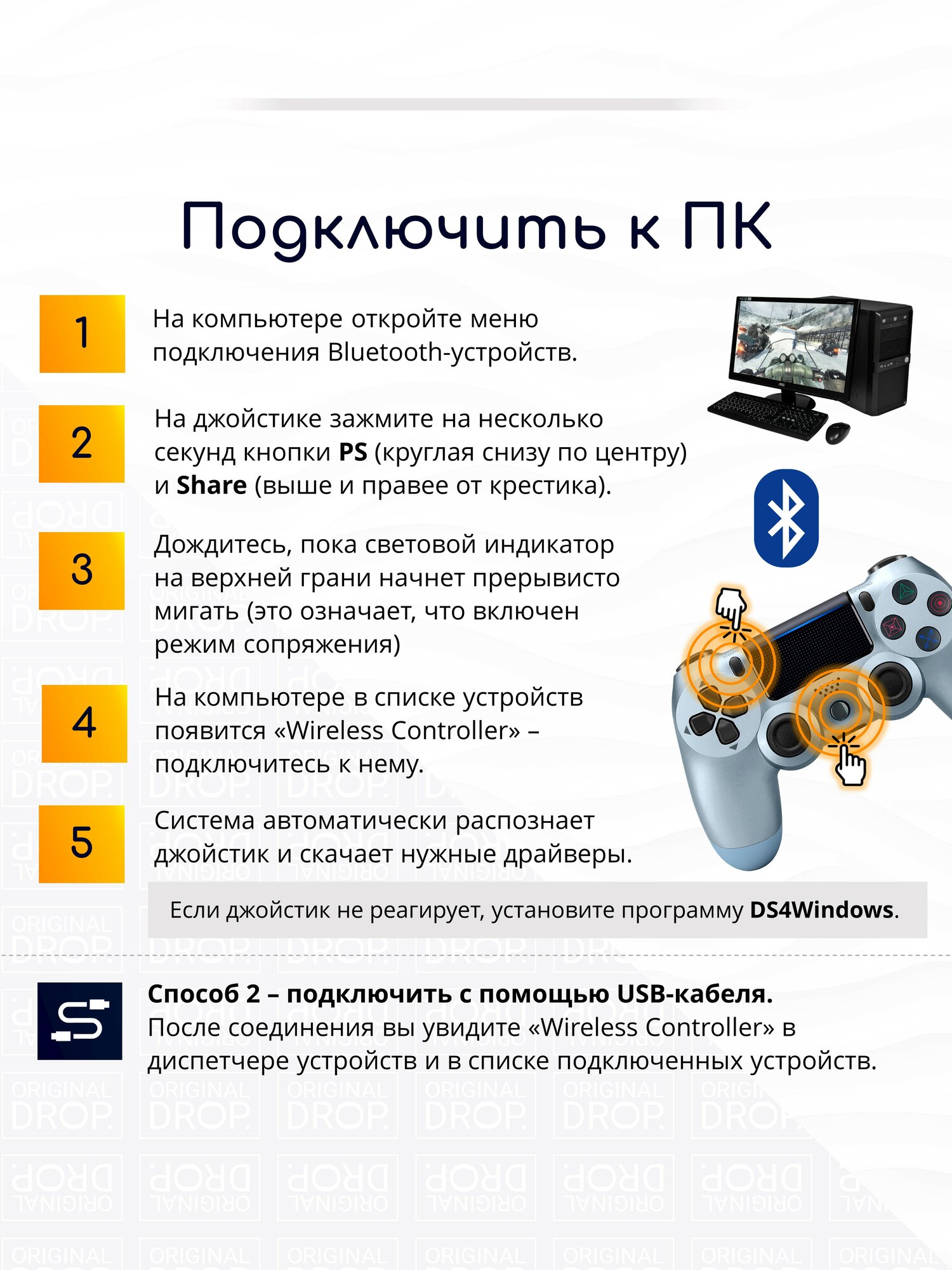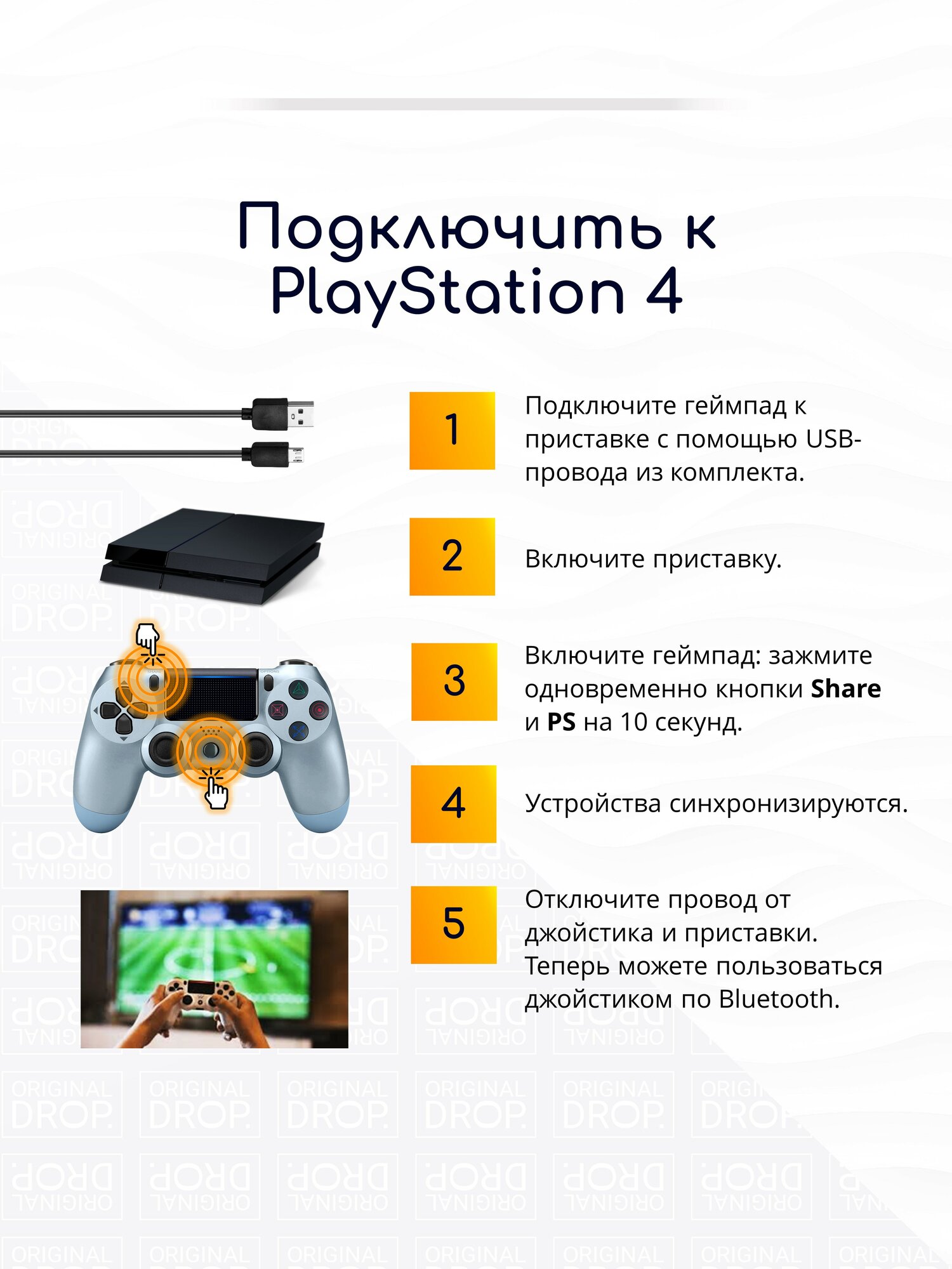 ✅ Универсальный. Геймпад совместим с игровой консолью PlayStation 4, смартфонами и планшетами на операционных системах iOs (iPhone, iPad) и Android, персональными компьютерами (PC) и ноутбуками.