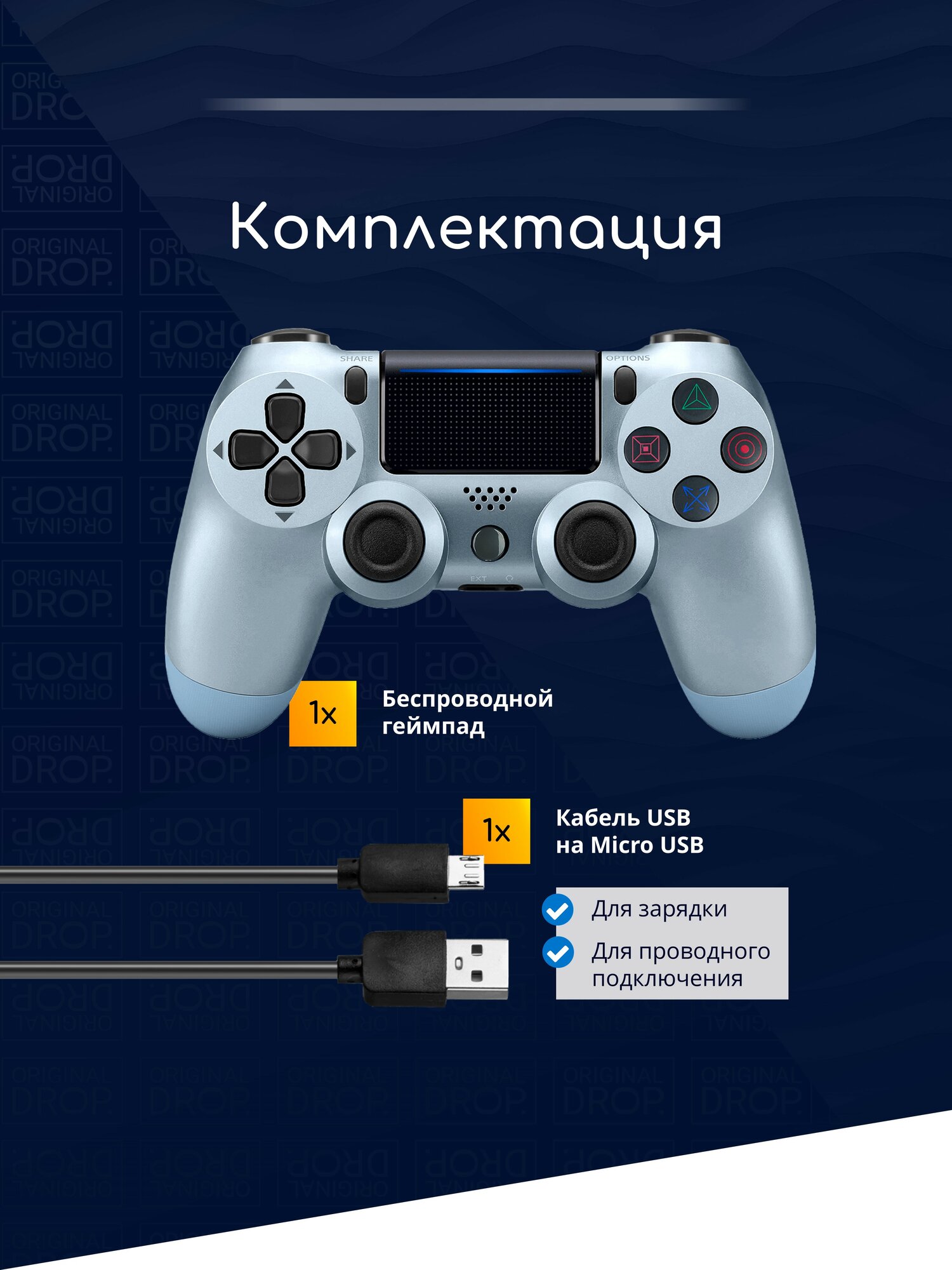 Беспроводной джойстик Original Drop для PS4 с полным набором функций DualShock 4 (v2) и подключением через Bluetooth. Цвет - стальной синий.