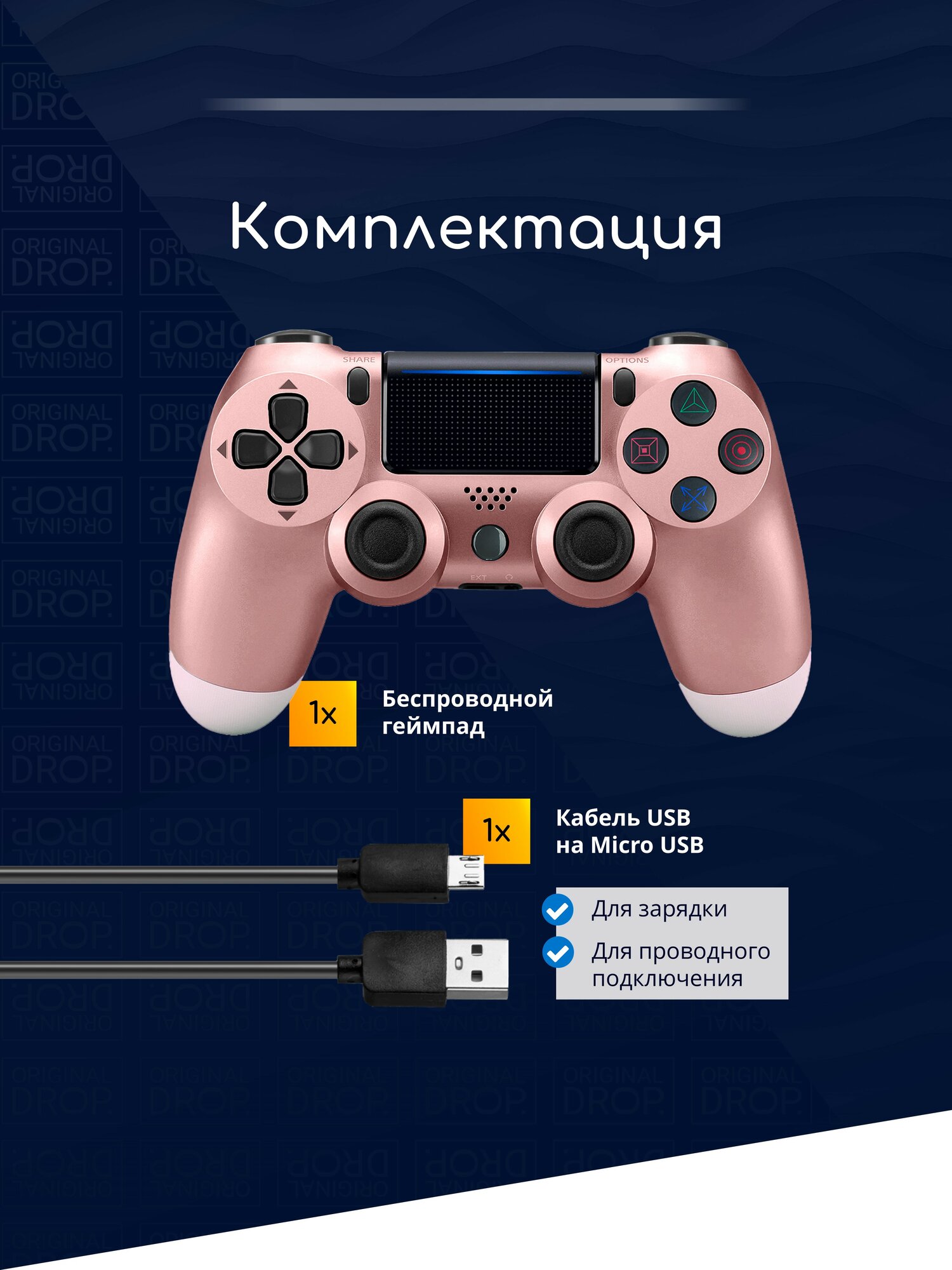 Золотистый розовый беспроводной джойстик Original Drop для PS4 с полным набором функций DualShock 4 (v2) и подключением через Bluetooth.