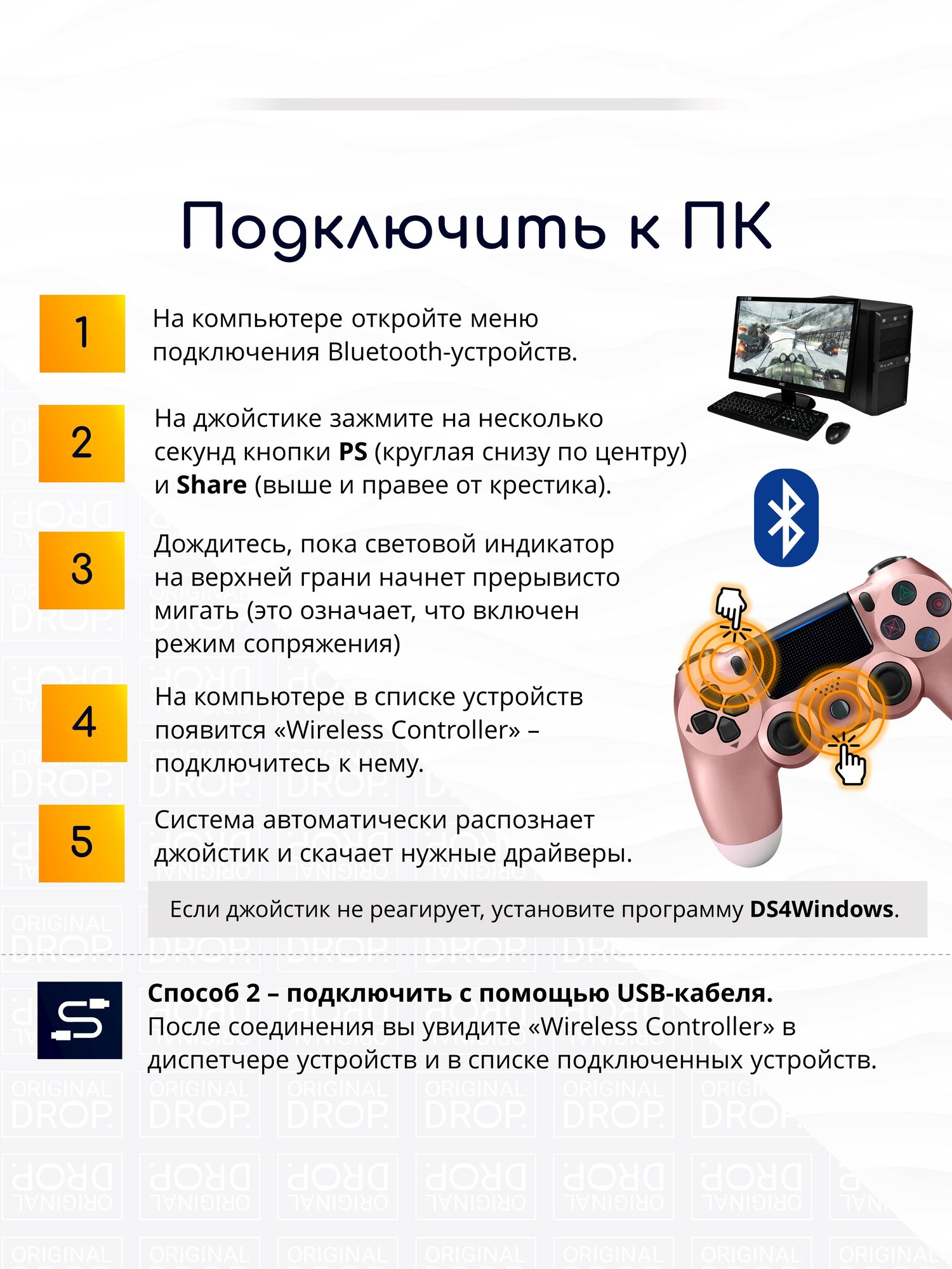 ✅ Универсальный. Геймпад совместим с игровой консолью PlayStation 4, смартфонами и планшетами на операционных системах iOs (iPhone, iPad) и Android, персональными компьютерами (PC) и ноутбуками.