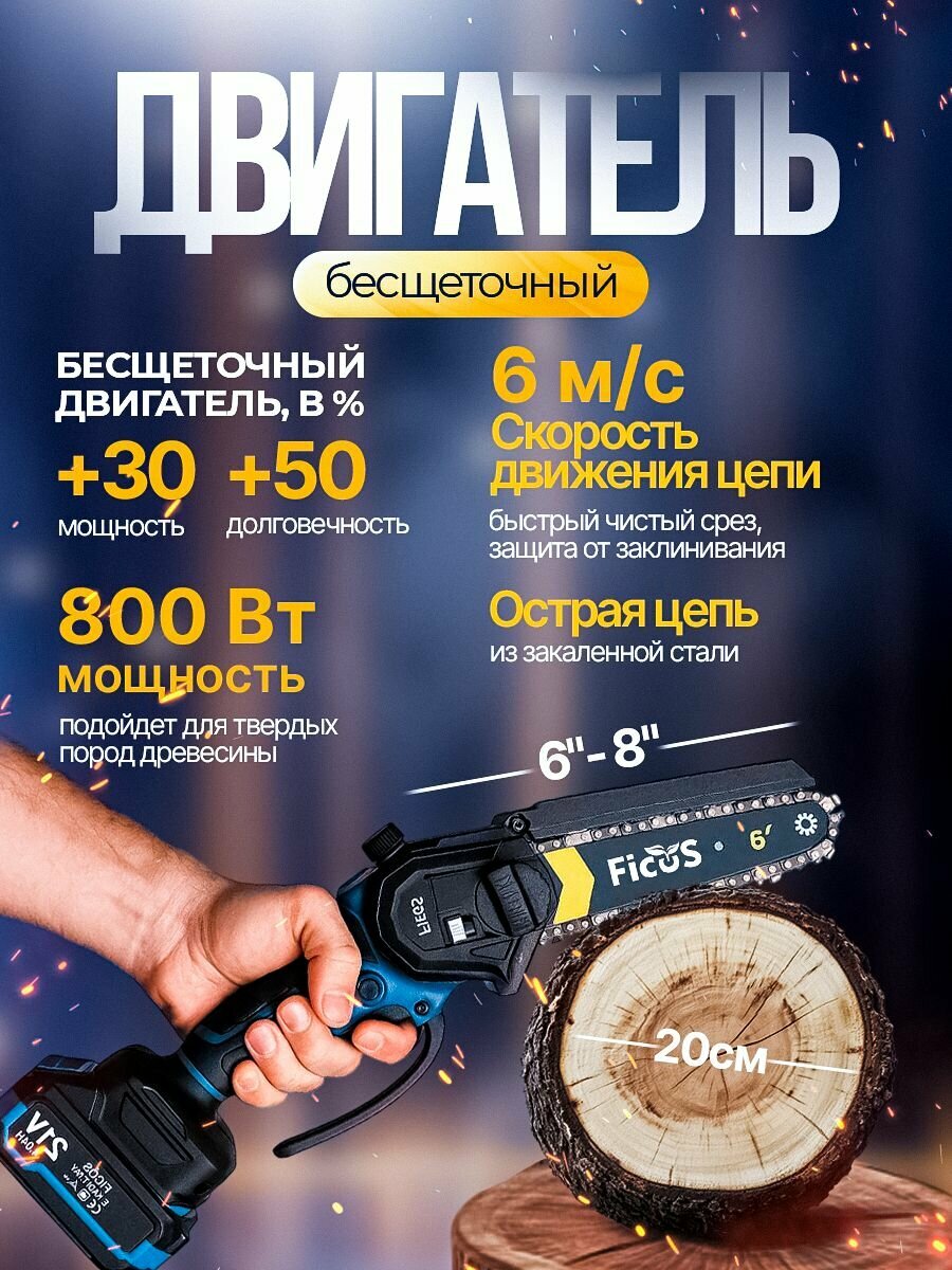 Купить Оригинал Мини пила аккумуляторная цепная садовая 6/8 дюймов FICUS с доставкой по всей России.