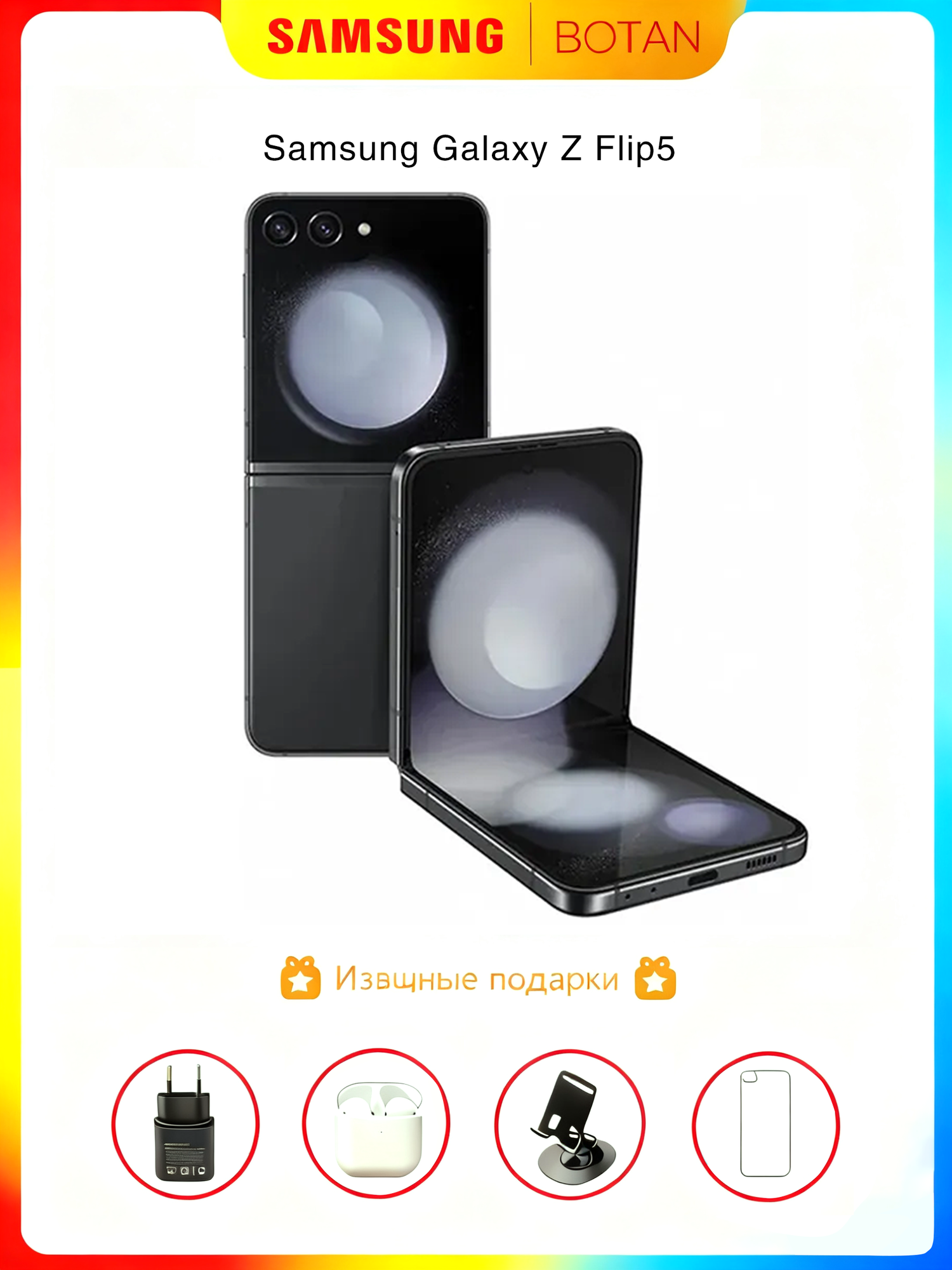 Оригинал, скидка цена, Смартфон Samsung Galaxy Z Flip5 8/256 ГБ, SIM, графит