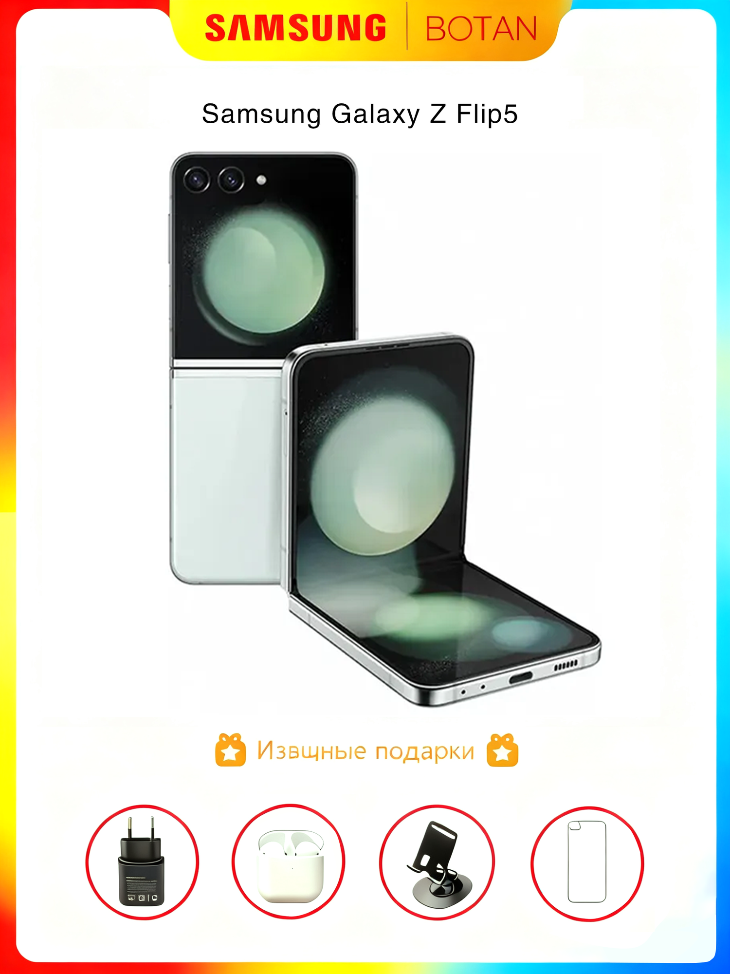 Оригинал, Смартфон Samsung Galaxy Z Flip5 8/256 ГБ, SIM, мятный: сравнение цен, характеристики, фото, актуальное наличие и цены.