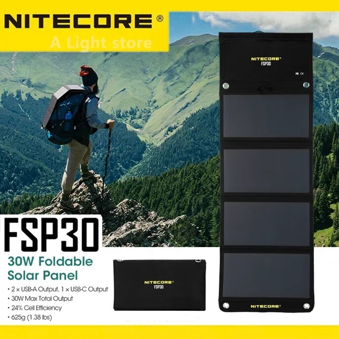 Оригинальная портативная солнечная панель NITECORE FSP30, 30 Вт, водонепроницаемая маленькая солнечная батарея, USB-C PD, 18 Вт, быстрое зарядное устройство для телефона, кемпинга, пешего туризма: сравнение цен, характеристики, фото, актуальное наличие и цены.