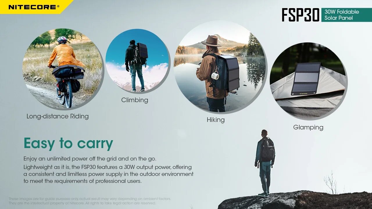 Оригинальная портативная солнечная панель NITECORE FSP30, 30 Вт, водонепроницаемая маленькая солнечная батарея, USB-C PD, 18 Вт, быстрое зарядное устройство для телефона, кемпинга, пешего туризма